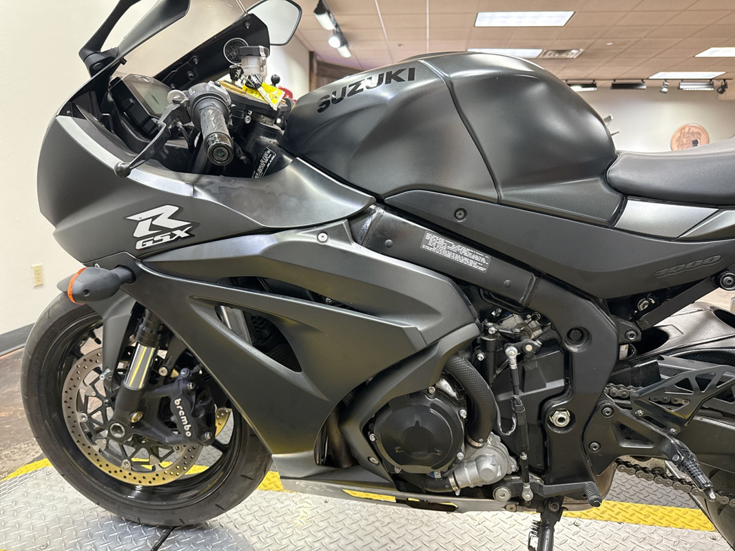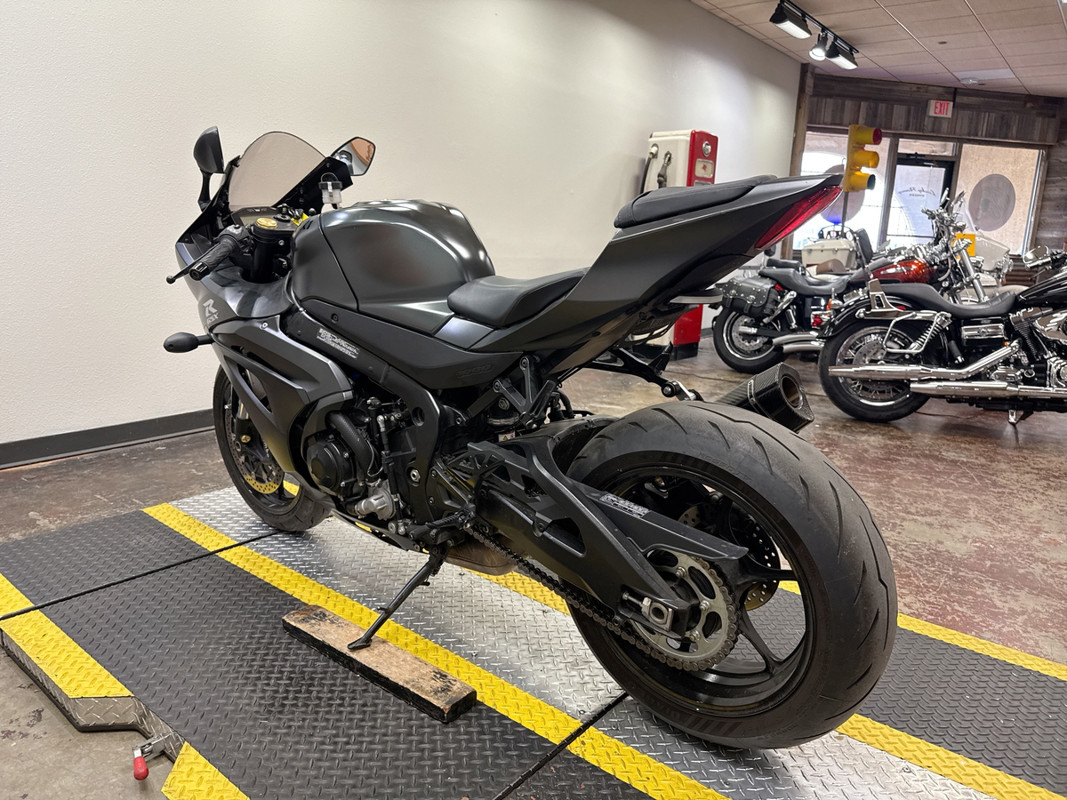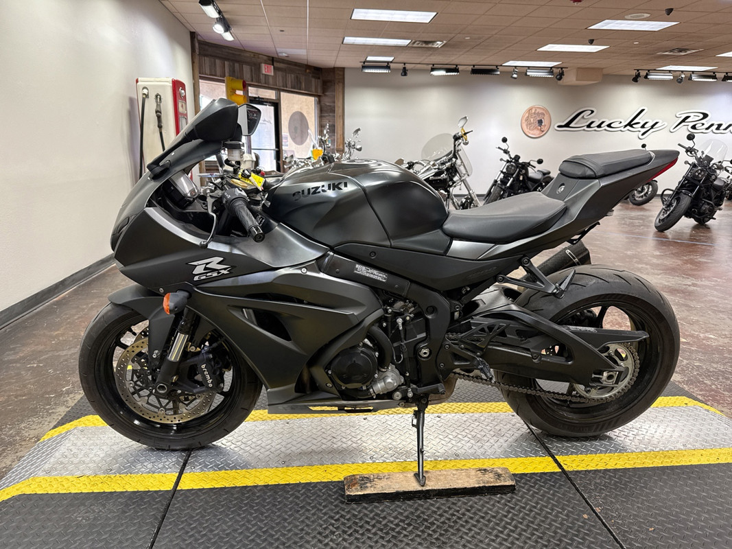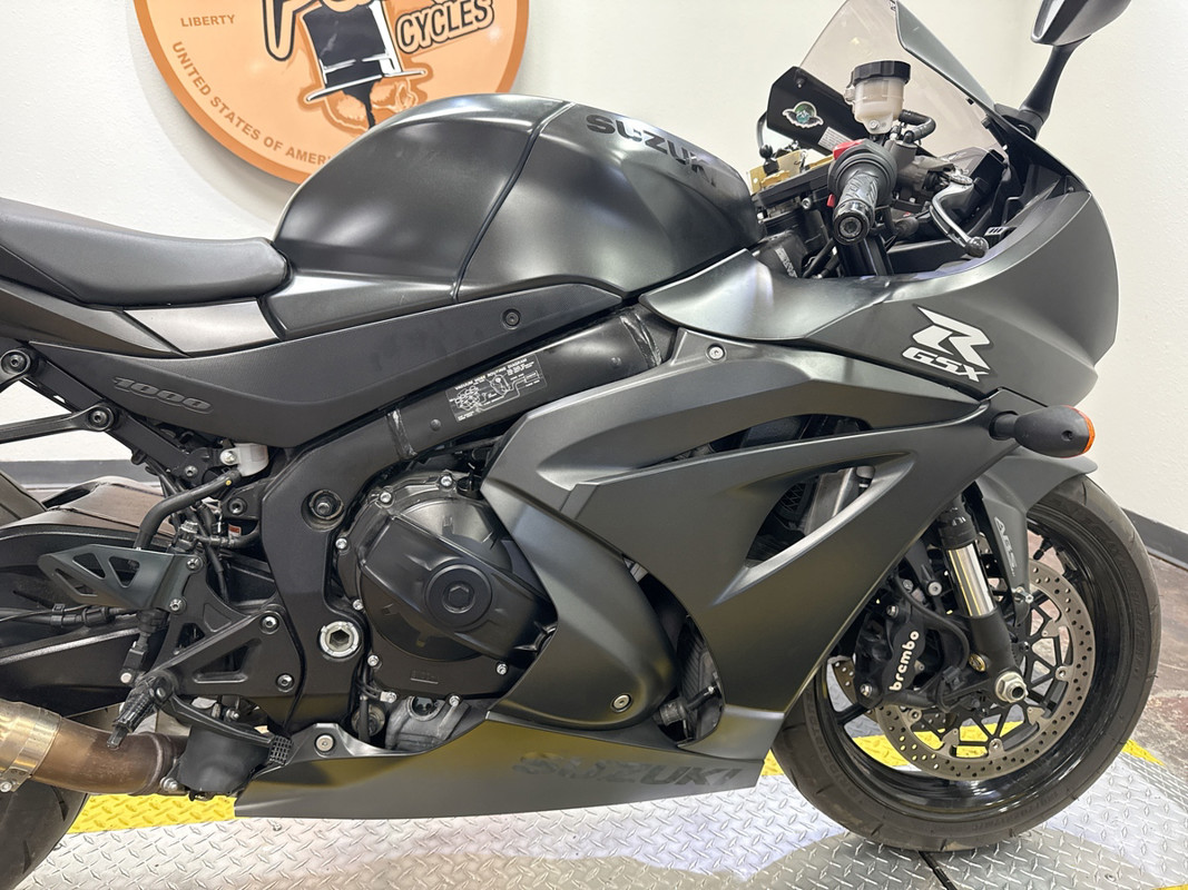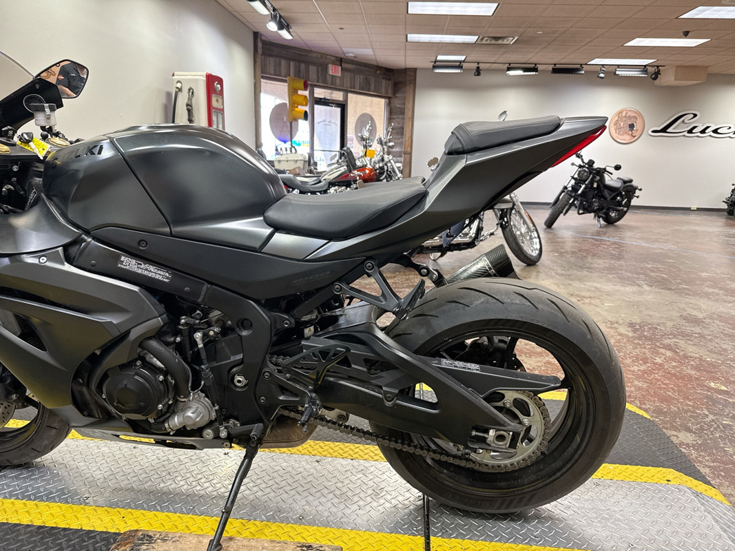 This 2022 Suzuki GSX-R1000 in a sleek blacked-out finish is a performance powerhouse equipped with an M4 exhaust that enhances both sound and performance for the ultimate riding experience! The GSX-R1000 is powered by a 999cc inline-four engine that delivers exhilarating acceleration and precise handling. The striking blacked-out aesthetic not only adds to its aggressive look but also emphasizes its aerodynamic design, making it a standout on the track or the street. This bike features an M4 exhaust system that not only improves exhaust flow for enhanced performance but also provides a deep, throaty growl that will turn heads wherever you ride. The lightweight chassis and advanced suspension components ensure that you can tackle corners with confidence and speed. Our thorough 78-point inspection confirms that this GSX-R1000 is in excellent condition, with tires and brakes showing strong life. If you’re looking for a sportbike that combines cutting-edge technology with a fierce design, this GSX-R1000 is the perfect choice for you. Call or text (817) 283-1650 to schedule a test ride at our Bedford showroom — just minutes from Fort Worth, Arlington, and HEB. Nationwide shipping available.